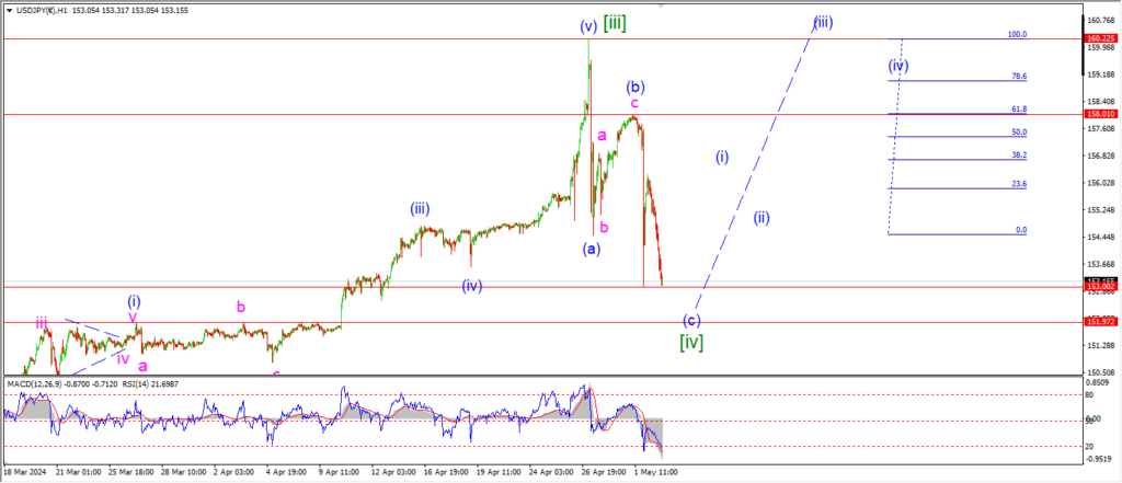 USDJPY has dumped today and wave (c) of [iv] is still in charge here.
