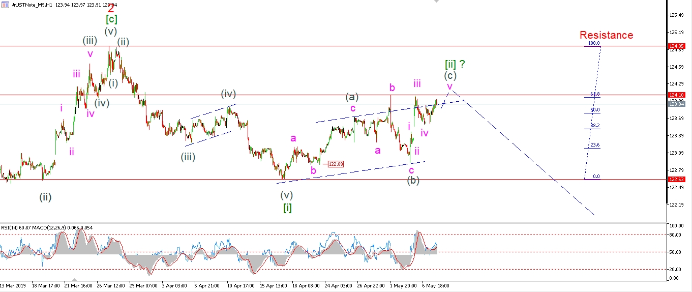 Watch for a final high in wave (c) of [ii] with a break of 124.10.