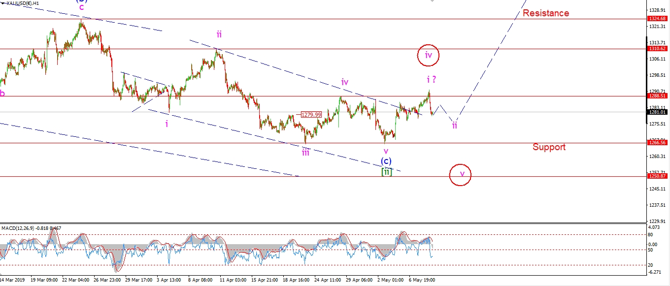 Watch for a three wave decline in wave ‘ii’ to hold above the 1267 level.