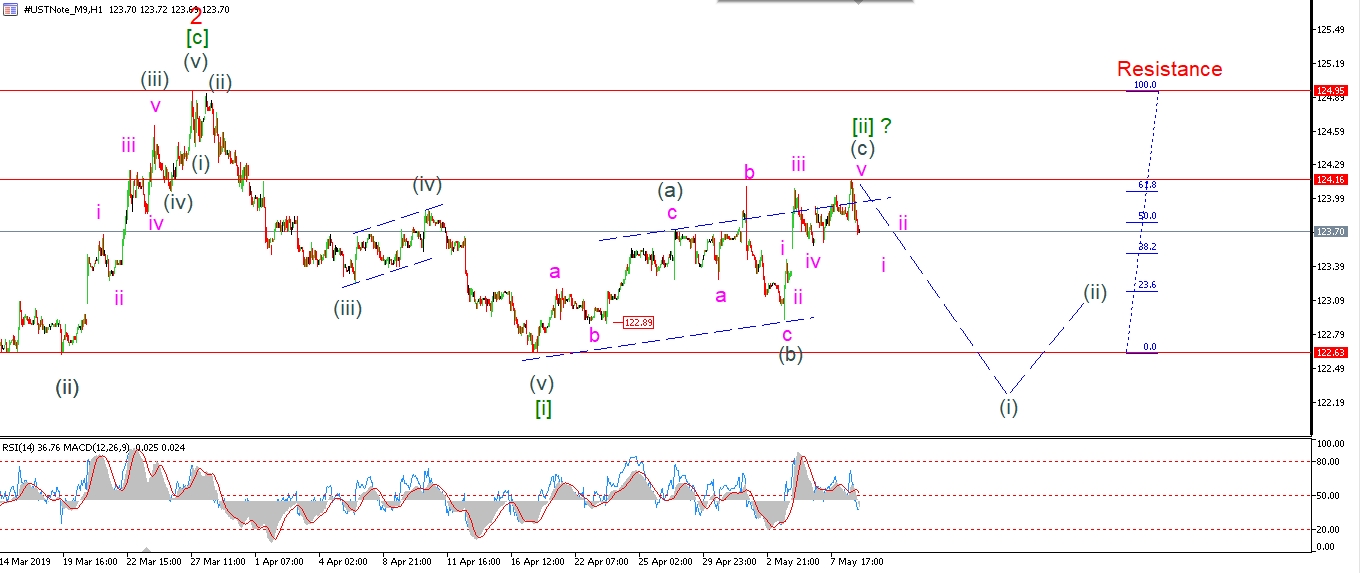 We should see a lower high now form below 124.16 in wave ‘i’ ans ‘ii’.