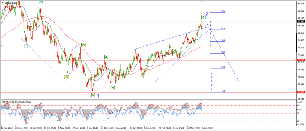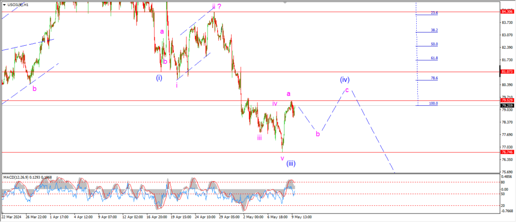 Watch for wave ‘b’ to fall in three waves and then form a higher low above 76.74.
