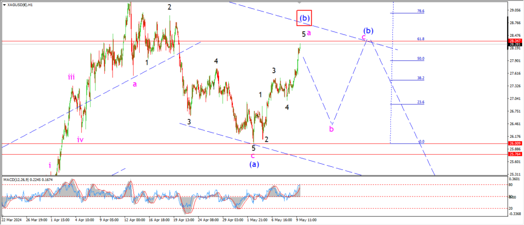 This correction in wave ‘b’ is close to completing a three wave correction higher now.