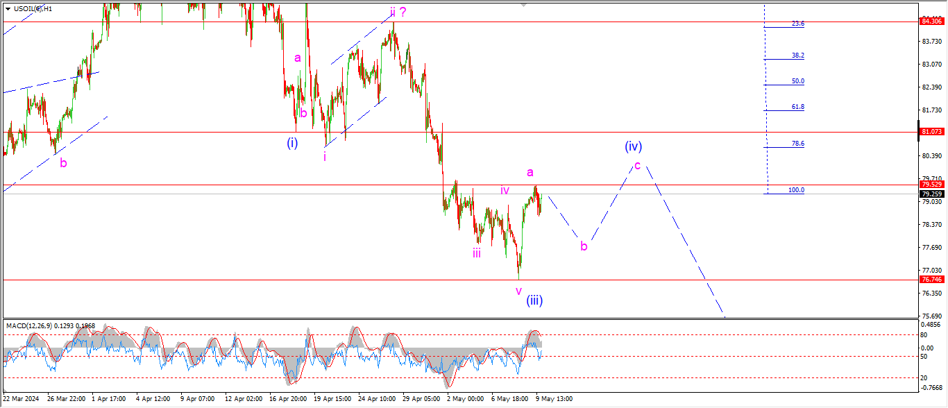 Watch for wave ‘b’ to fall in three waves and then form a higher low above 76.74.