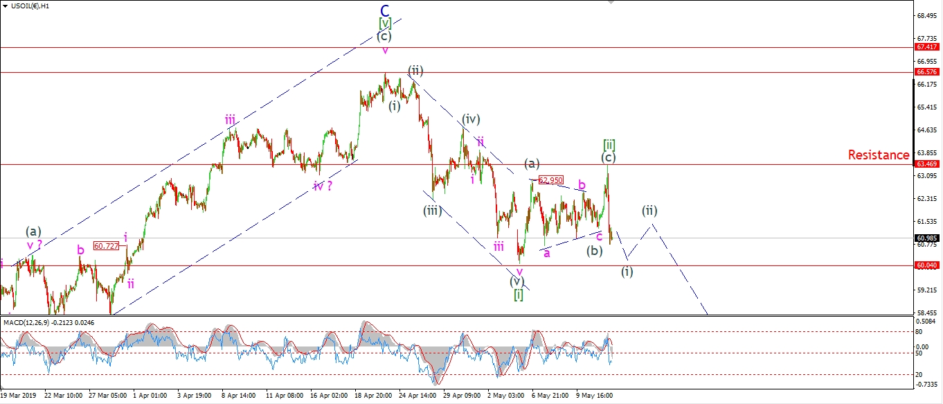 Crude hit the target area for wave (c) at 63.40 this afternoon.
