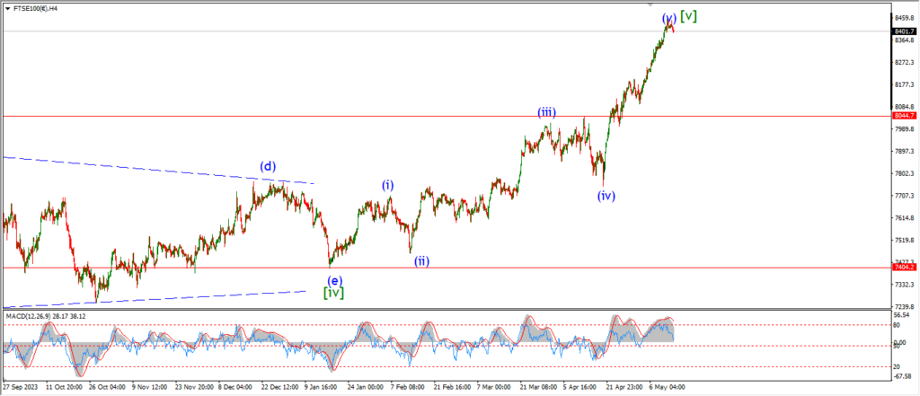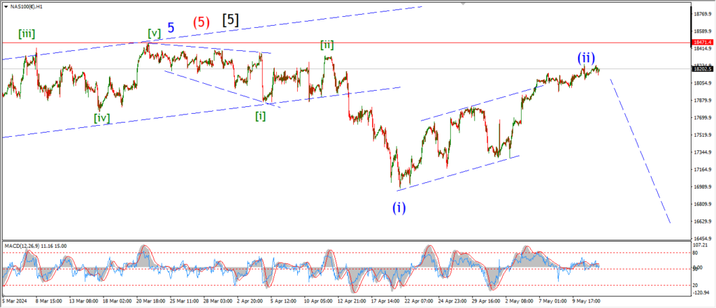 The market has pushed higher today in wave ‘c’ and this brings us closer to a completed correction in wave (ii) now.