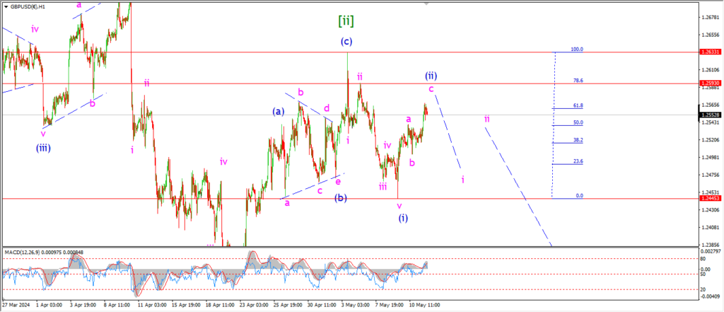 I am looking at the 78.6% retracement level at 1.2590 to close out wave ‘c’ of (ii),