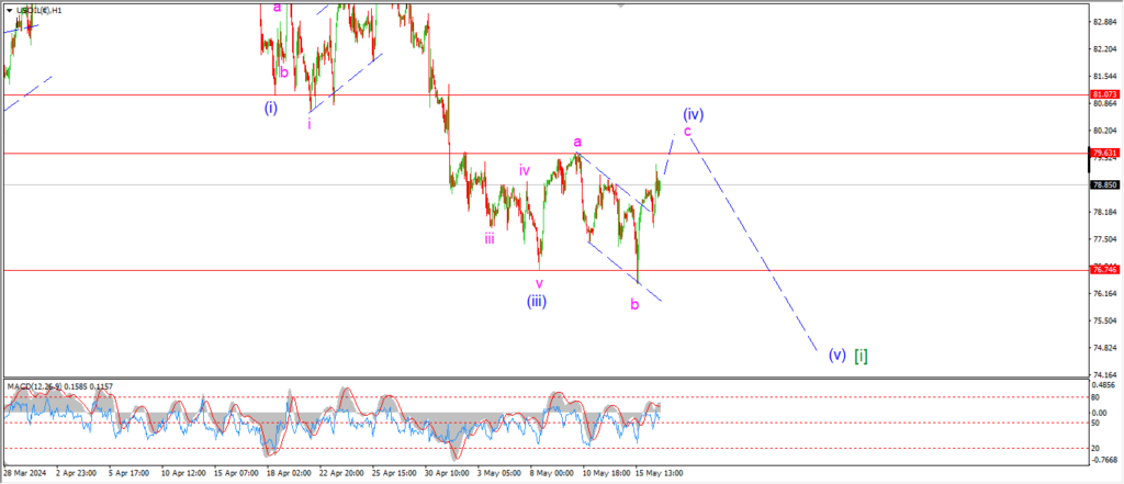 I am going to give this pattern another day to see if wave (iv) can complete an expanded flat correction with a break above 79.63.