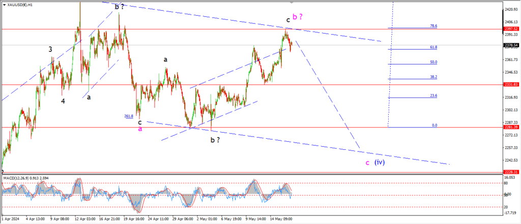 Wave (c) can then begin a five wave decline over the coming weeks.