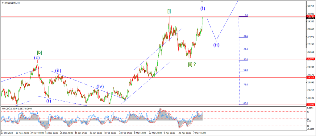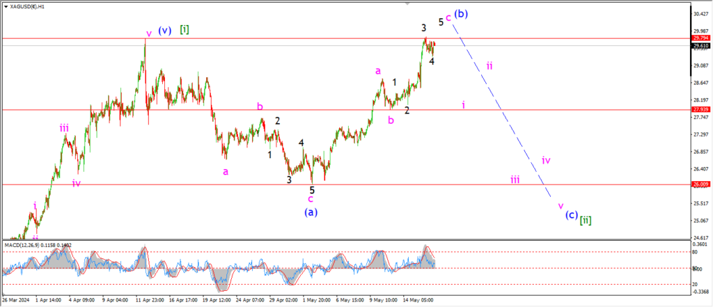 Watch for this rally in wave ‘c’ to top and then fall back in wave ‘i’ of (c) towards 27.90.