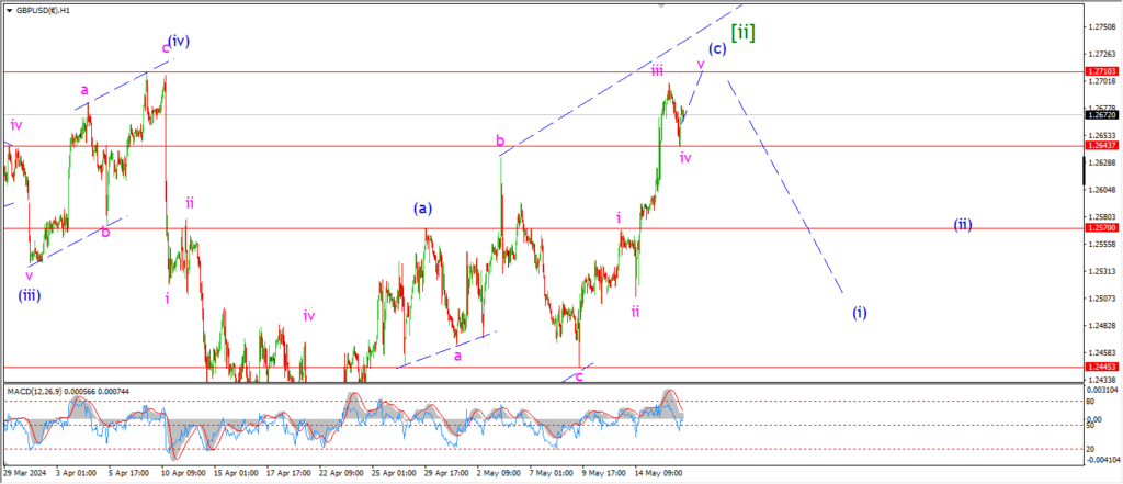 A break of the wave (a) high at 1.2570 again will signal that wave (i) down has begun.