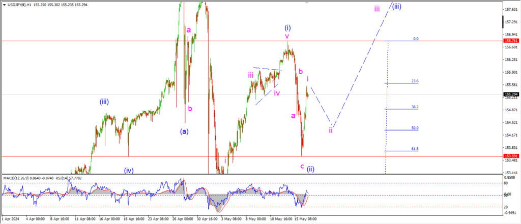Watch for wave ‘i’ and ‘ii’ to create a higher low above the wave (ii) low at 153.60.