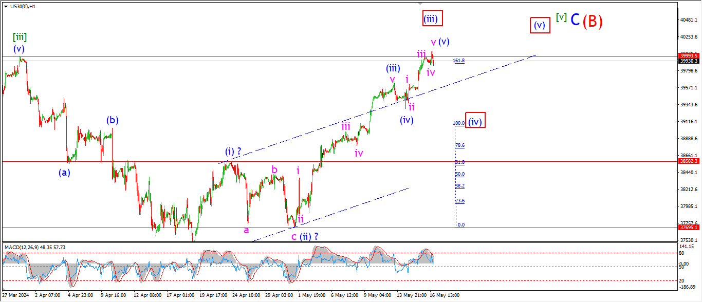 The S&P has traced out another small five wave pattern into this weeks highs to close out wave ‘v’ of (iii).