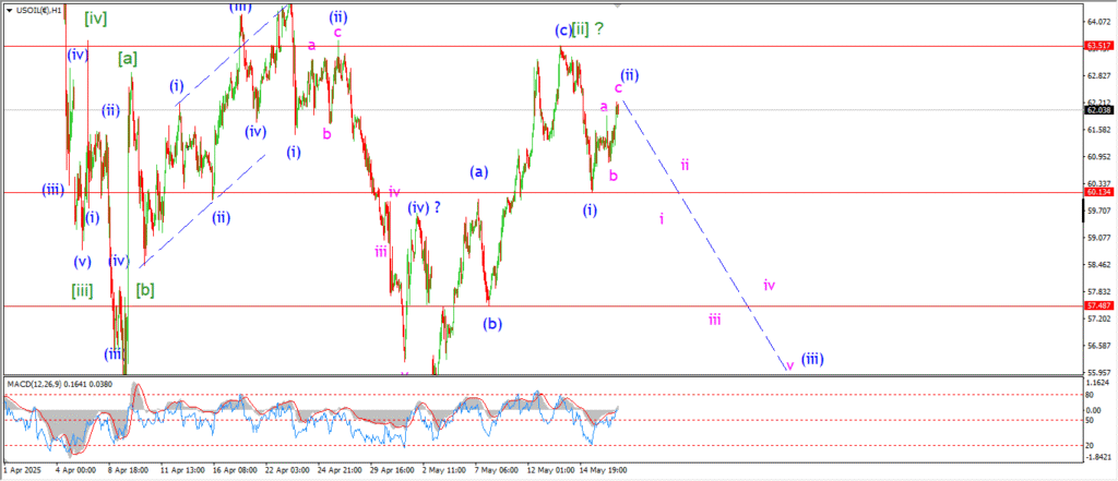 Wave ‘i’ of (iii) must turn lower on Monday to break the wave (i) low at 60.00 again.