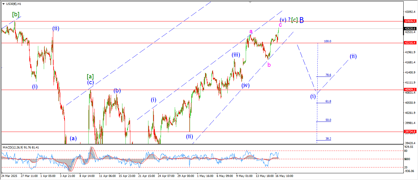 Watch for wave [c] of ‘B’ top out on Monday and we must see a hard reversal from there.