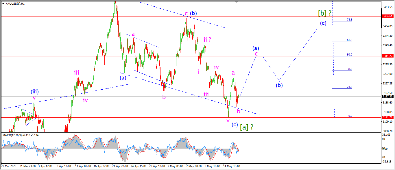 Gold has traced out a higher low today in wave ‘b’ of (a)