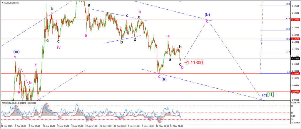 Wave ‘ii’ is working its way higher today as part of a running flat correction I think.