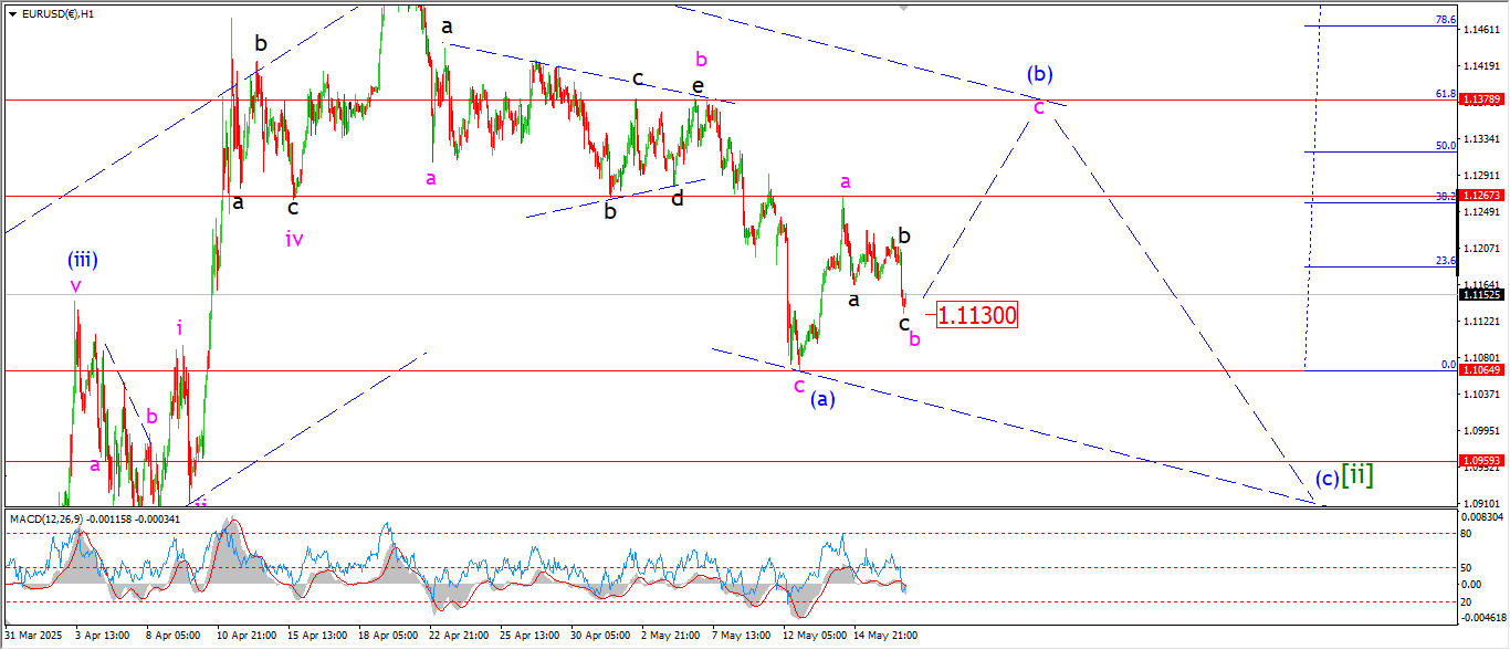 and wave ‘c’ of (b) should turn higher no Monday to target the wave (b) high near 1.1300 again.