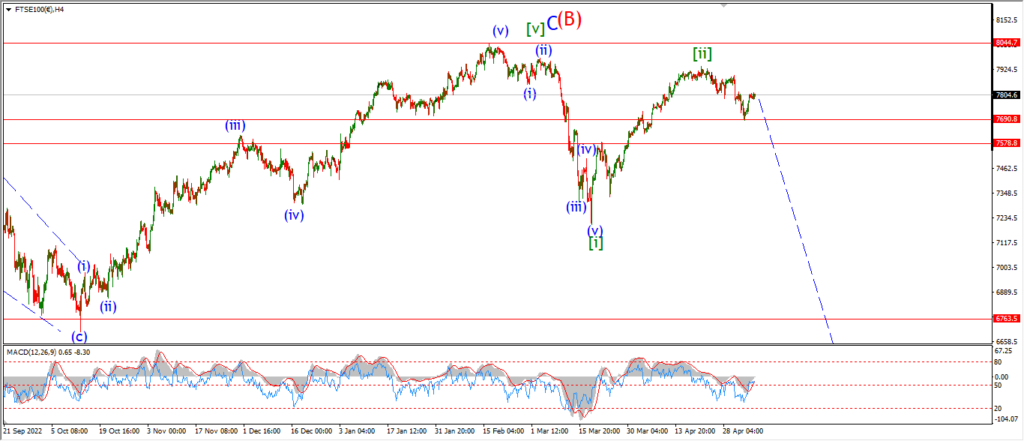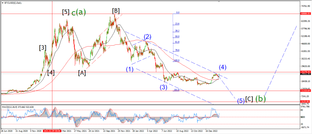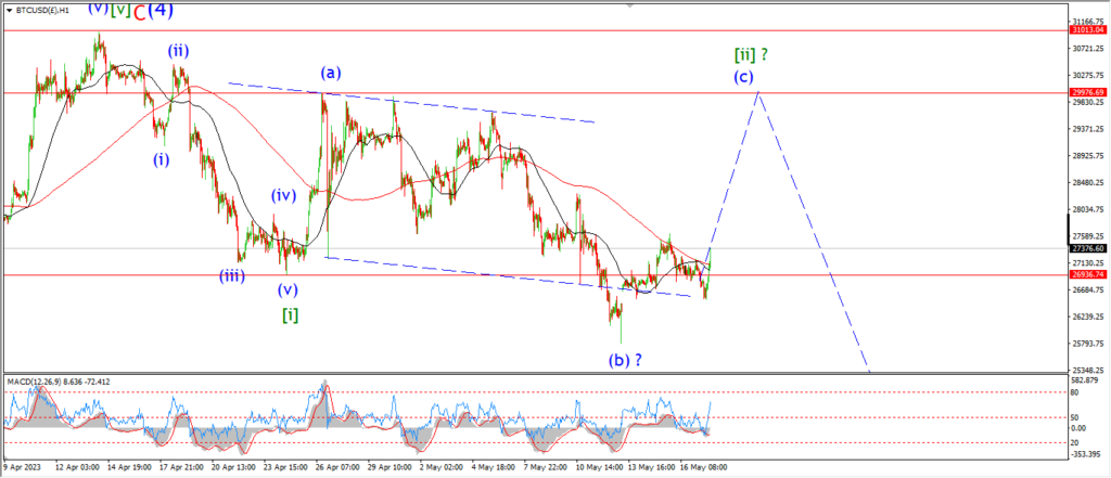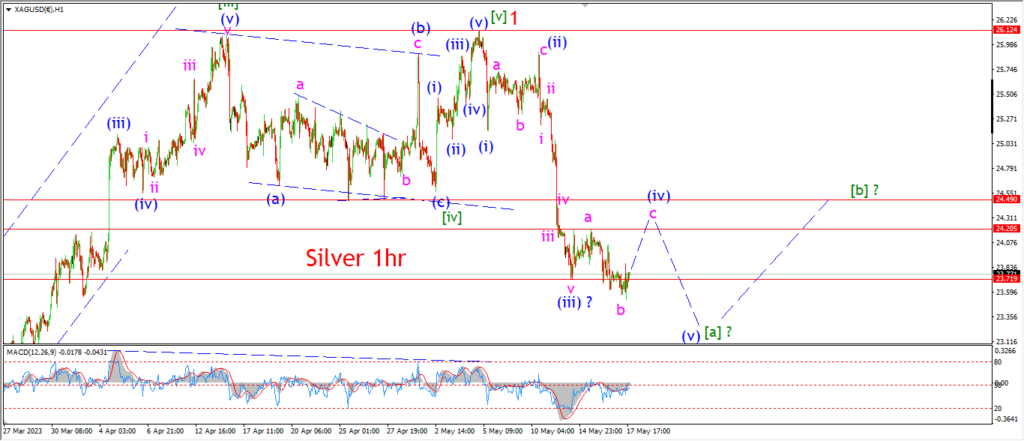 The wave count still stands for wave ‘ii’ of (i) of [iii] to the downside.