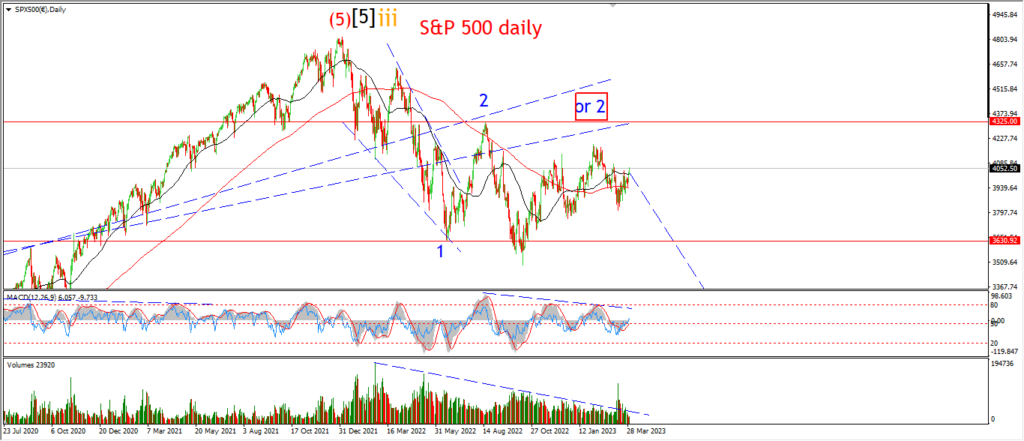 A break of the 4100 level again will favor the idea that wave (i) of [iii] to the downside is beginning.