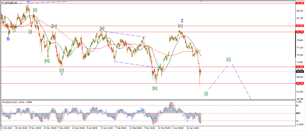 Wave ‘iii’ down should now begin and take the price back below 69.34 again by the end of the week.