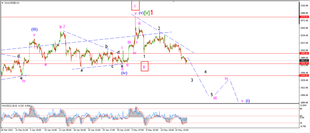 Wave ‘iii’ of (i) must make progress tomorrow and extend the declines back below 1950 again in order to confirm this pattern.