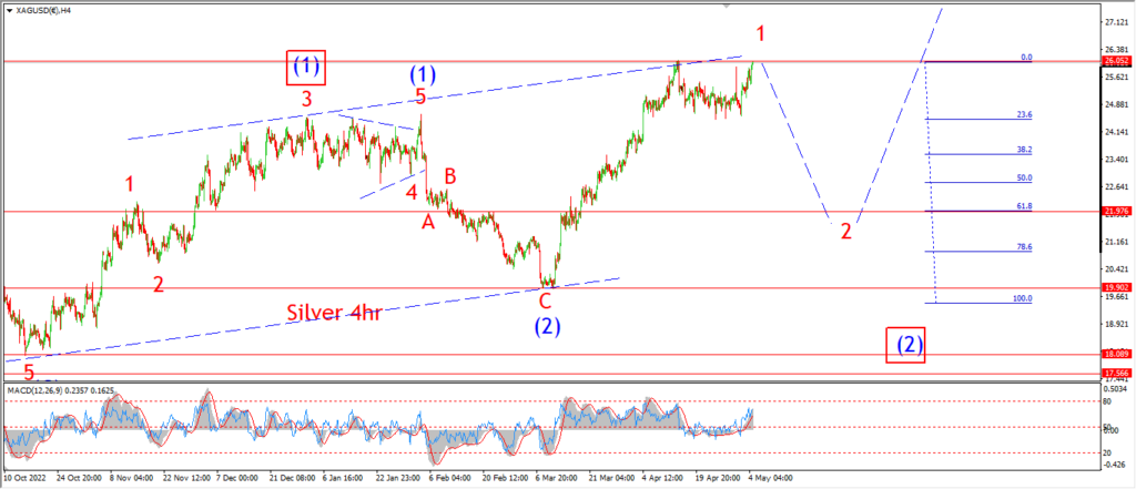 Overall this initial decline off wave ‘1’ is building a three wave decline into wave ‘2’ red.