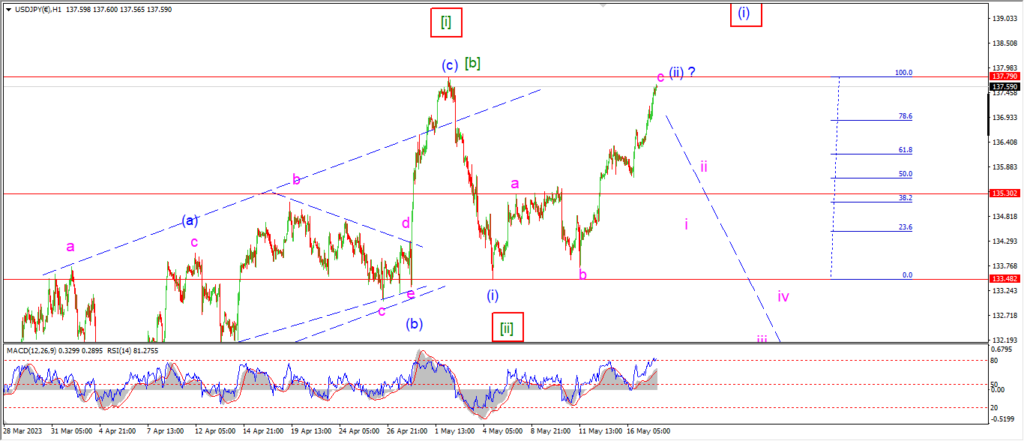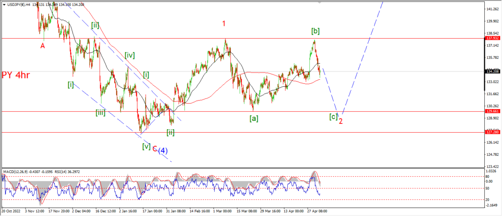 A break above 137.79 again will rule out the larger wave ‘2’ pattern as shown in the 4hr chart.