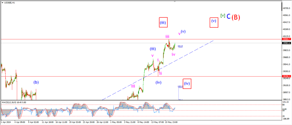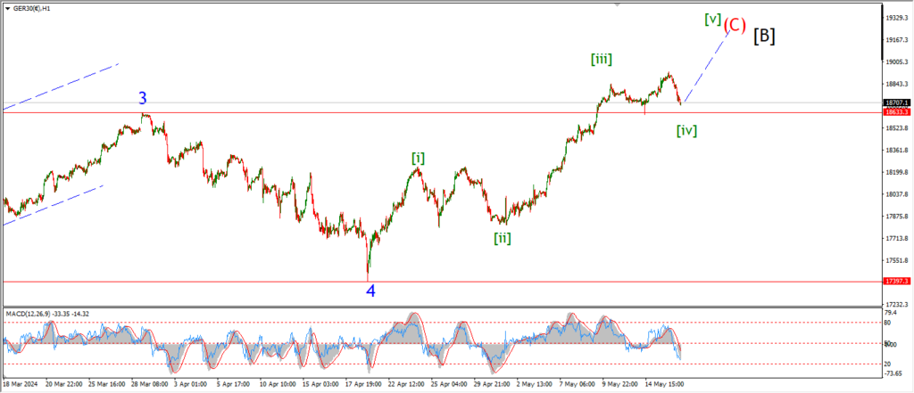Wave ‘iv’ of (v) is shown at the lows today and possibly a turn higher into wave ‘v’ is underway now.