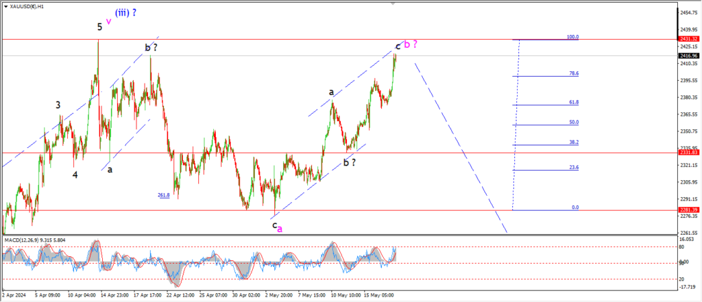 Gold is holding that three wave pattern higher in wave ‘b’ of (iv).