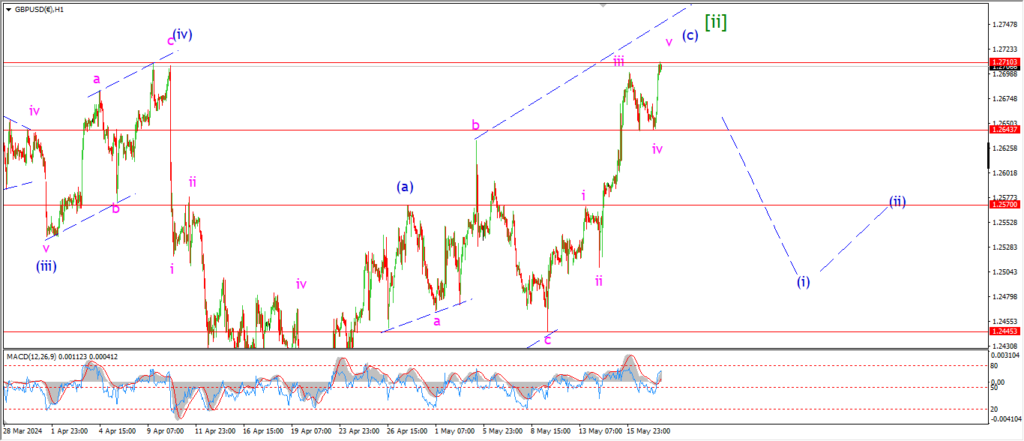 If you take a look at the 4hr chart you can see that the price has now reached the upper trend channel line and wave [i] looks like a good fit here.