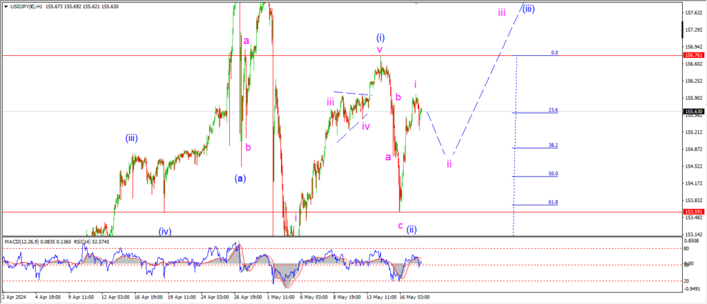 I expect a three wave decline in wave ‘ii’ early next week with a low forming in wave ‘ii’ near 154.50.