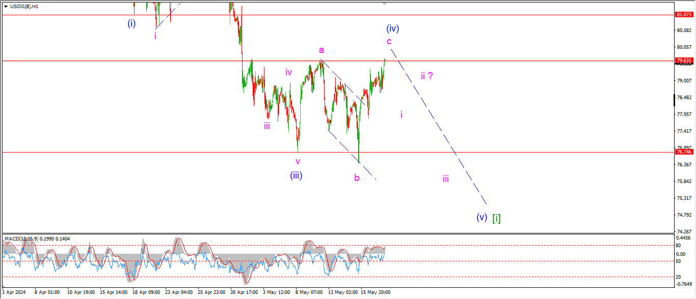 WAtch for wave ‘c’ of (iv) to complete below 81.00 and then wave ‘i’ of (V) should drop back below 79.00 again.