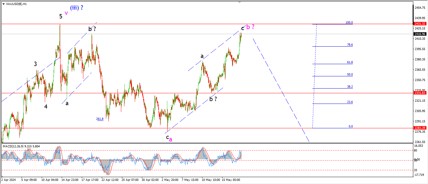The price went vertical and the internal pattern of the recent rally now has a five wave pattern in place.