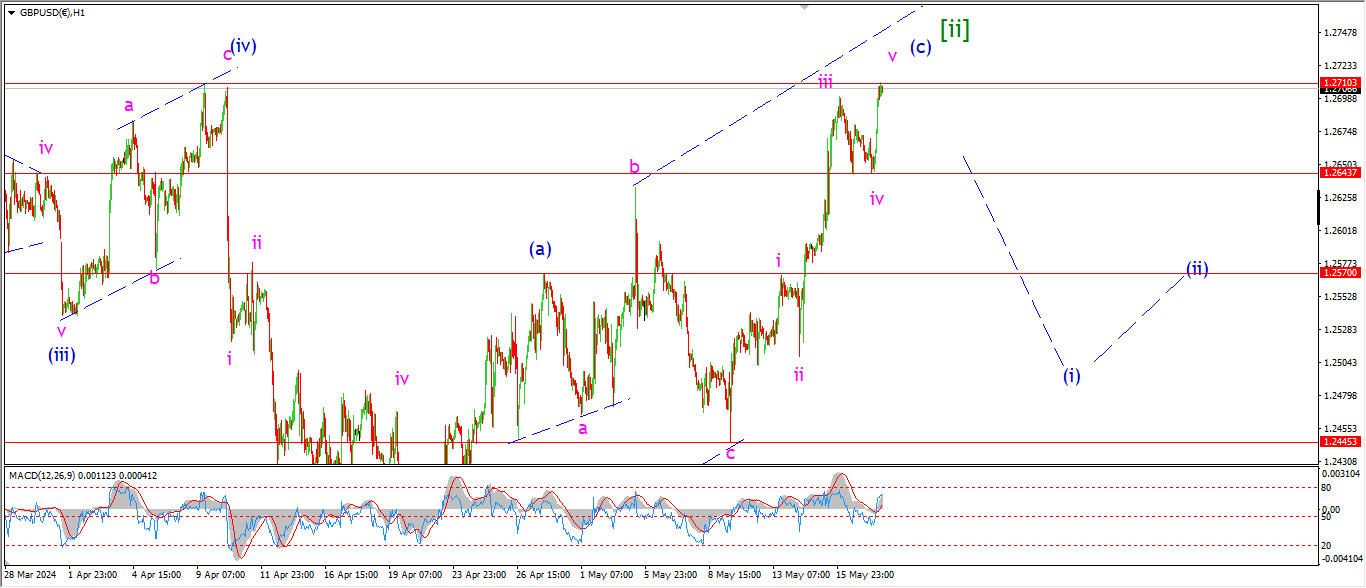 If you take a look at the 4hr chart you can see that the price has now reached the upper trend channel line and wave [i] looks like a good fit here.