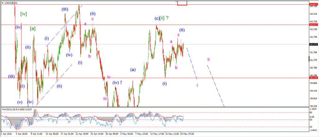 Watch for wave [ii] to hold at 63.50 and wave ‘i’ of (iii) of [iii] to continue lower into the 60.00 level again.