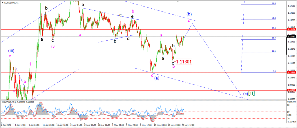 I am looking for a pop above 1.1318 again at the 50% retracement level to complete three waves up in wave (b) very soon.