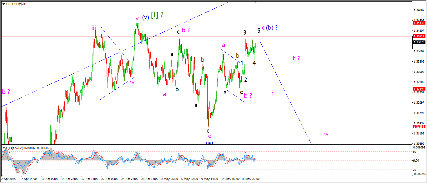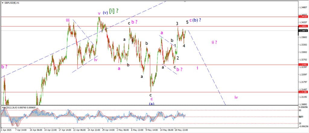 Watch for wave ‘c’ to complete with a pop above 1.3404 and then wave ‘i’ of (c) must begin.