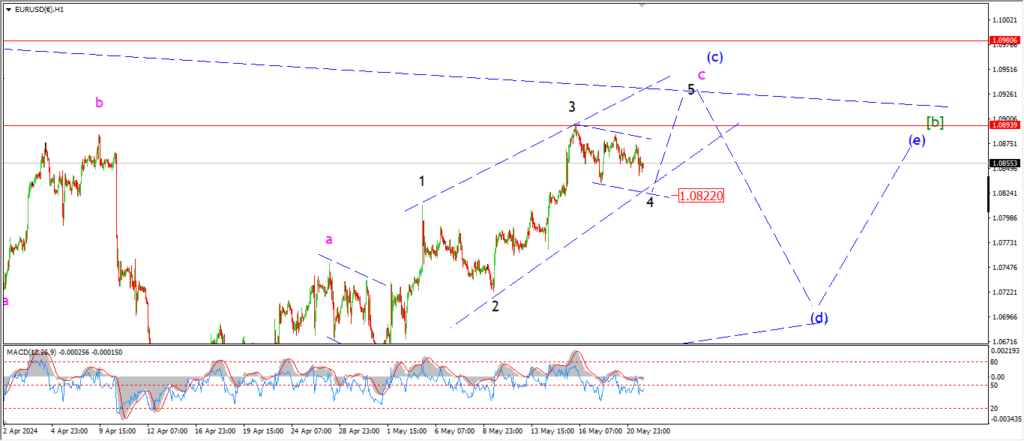 Watch for wave ‘4’ to close out near 1.0822 and then turn higher into wave ‘5’.