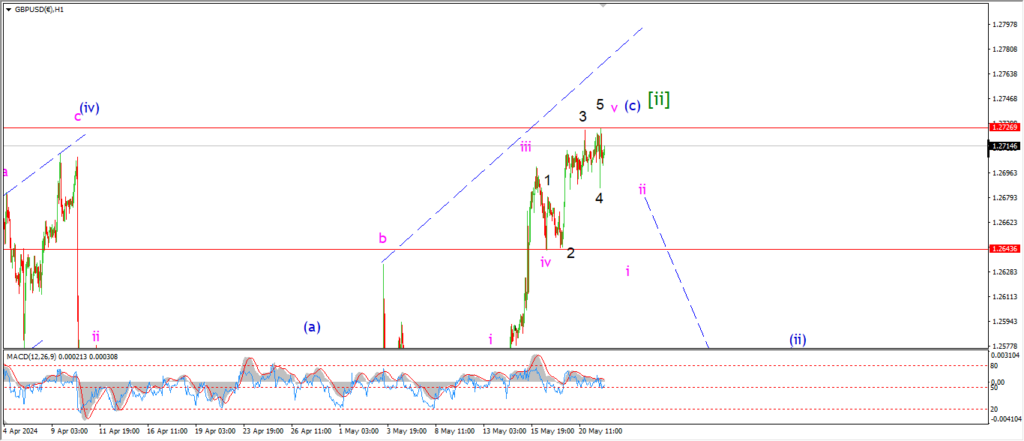 Watch for wave ‘i’ of (i) to fall back below 1.2643 to signal the top is in and the market has turned.