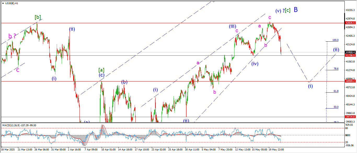 watch for wave (i) to make progress lower in a five wave pattern to break the 41000 level again.