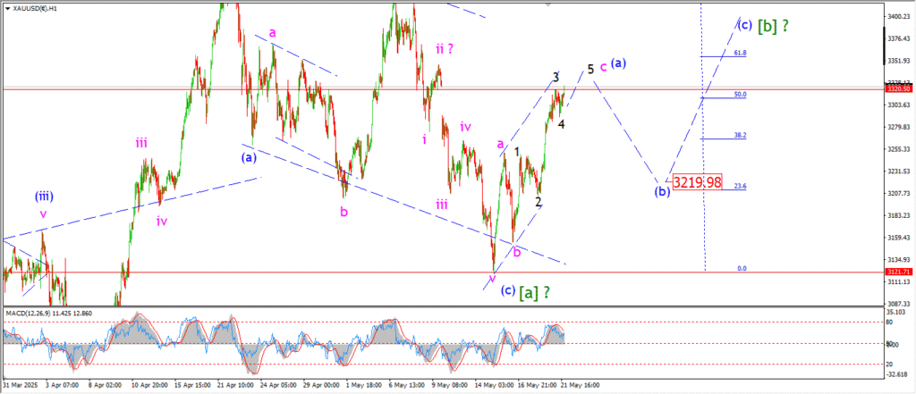 the price is close to completing a five wave rally in wave ‘c’ of (a).