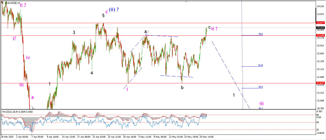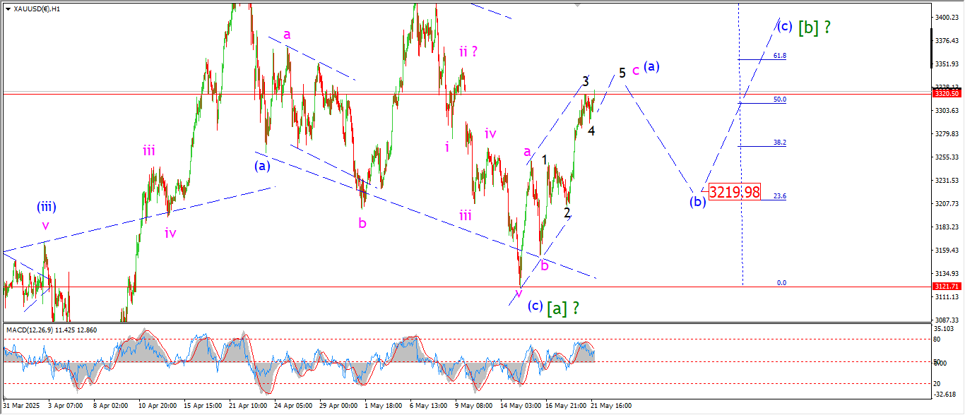 Gold is getting closer to that wave ‘c’ top now after a small correction and a new high today.