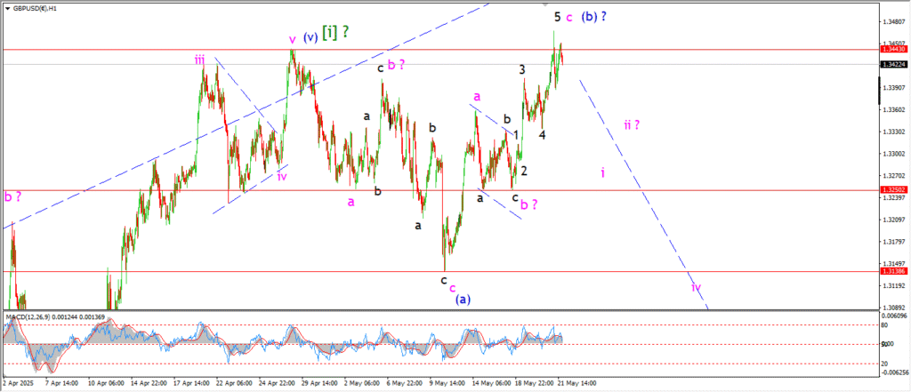 Watch for wave ‘i’ of (c) to fall back into the 1.3300 level in five waves.