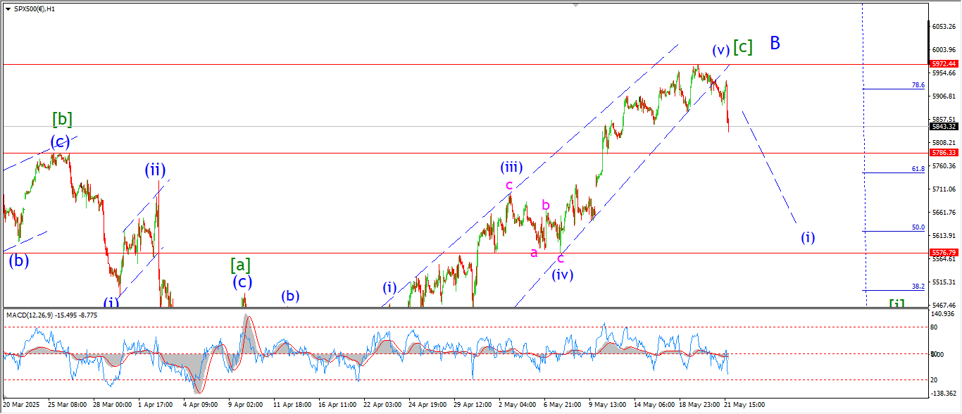 The S&P is back off the highs of wave ‘B’ today and the action is beginning to look impulsive to the downside again.