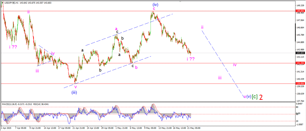 Watch for wave ‘ii’ to begin a three wave corrective rally to hit 146.50.