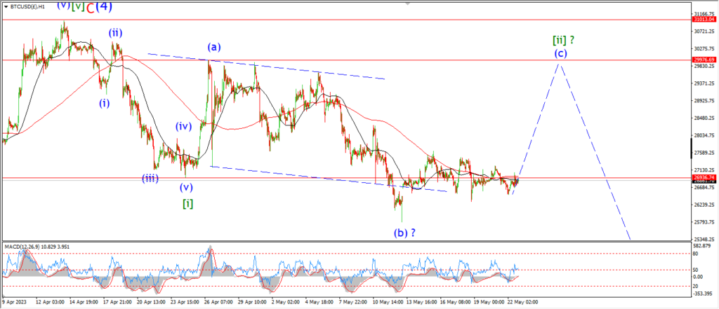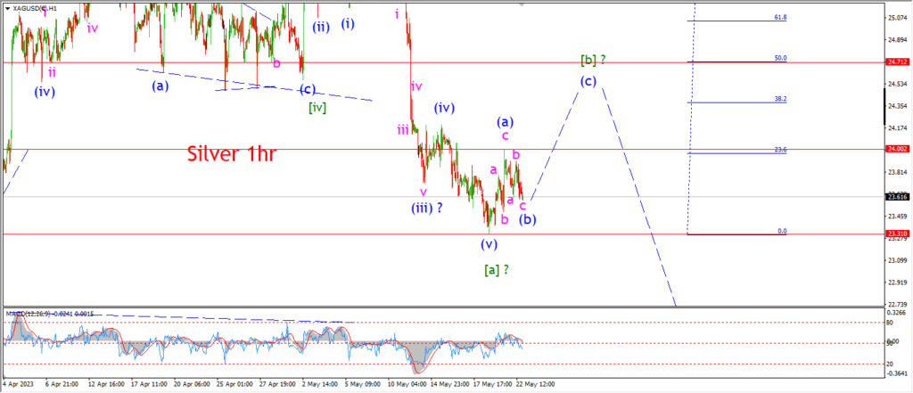 And in this scenario we should expect wave (c) to turn higher again by tomorrow evening and rally back towards 24.70 again at the 50% retracement of wave [a].