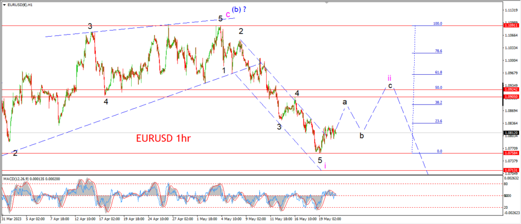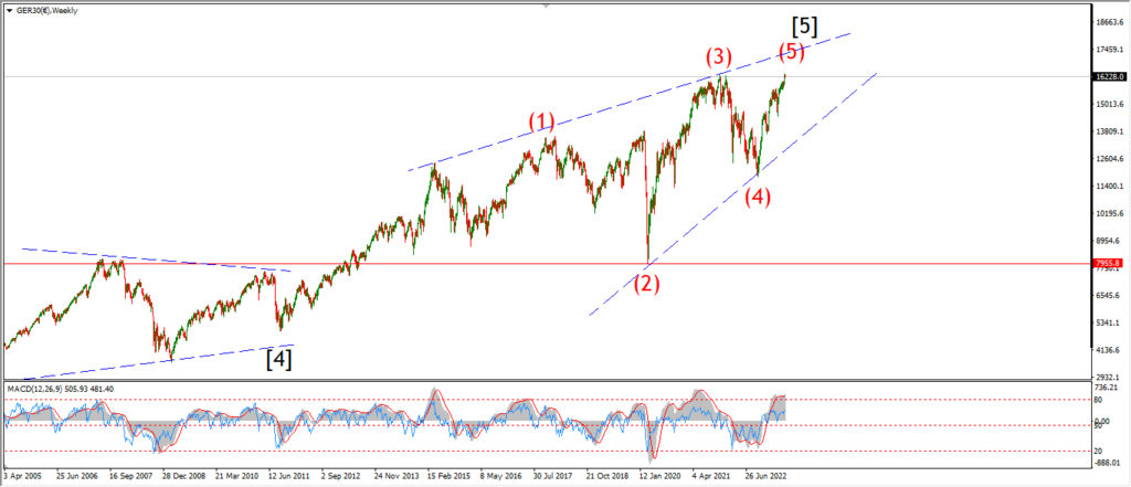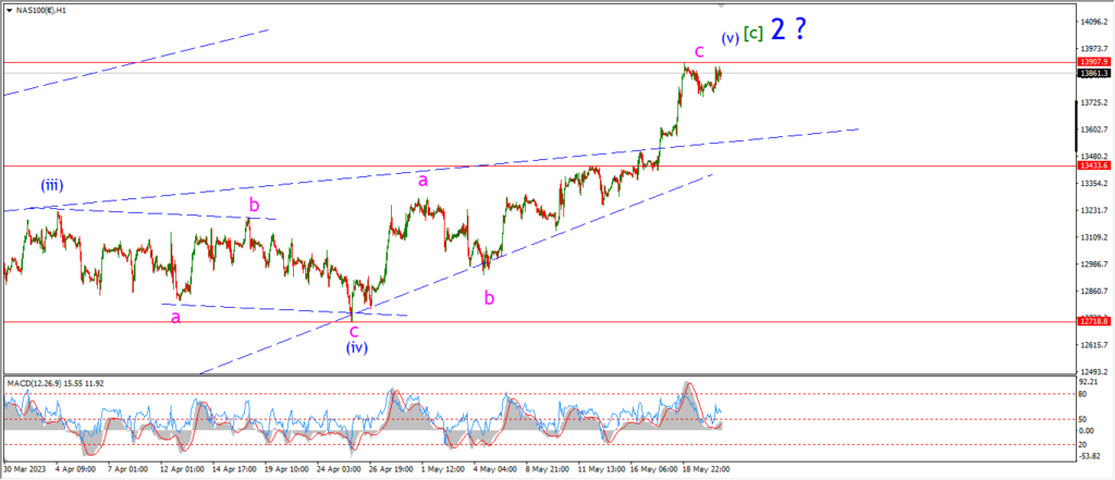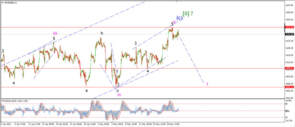 Watch for Fridays highs to hold again and for the market to begin stepping lower into a five wave pattern in wave ‘i’ down.