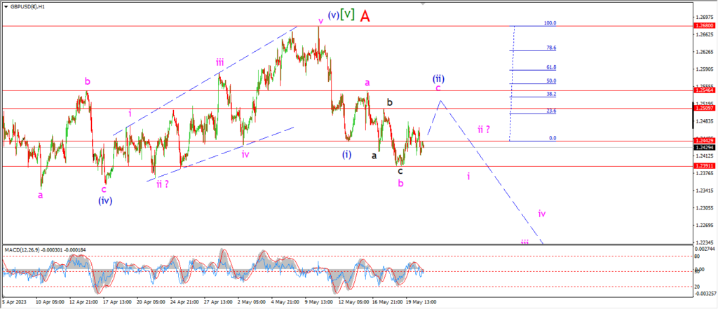 watch for wave ‘c’ of (ii) to continue higher towards 1.2546 in a three wave pattern.