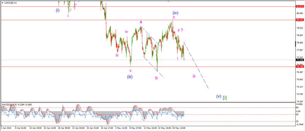 Crude has turned lower again today and we are getting close to a break of the wave (iii) low this evening.