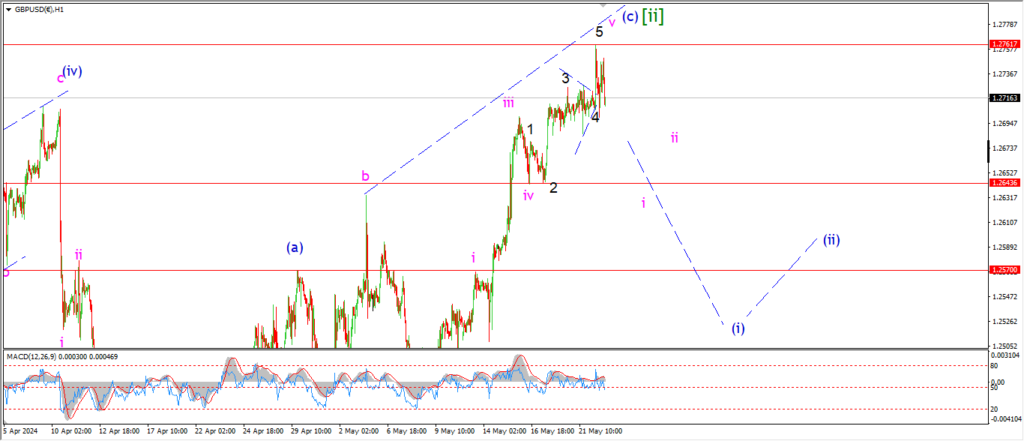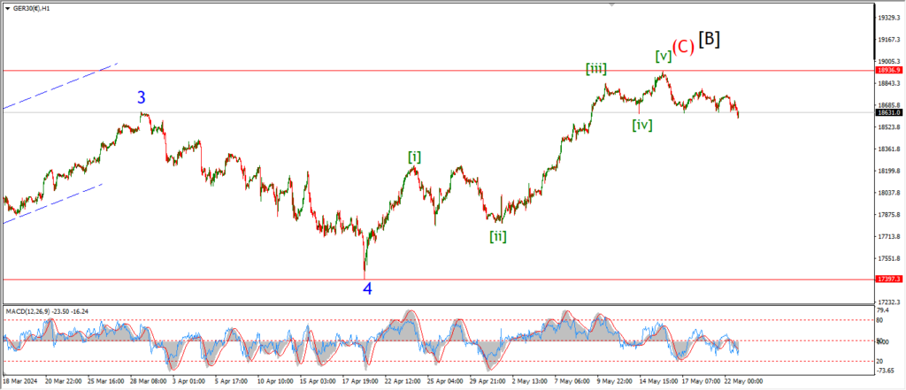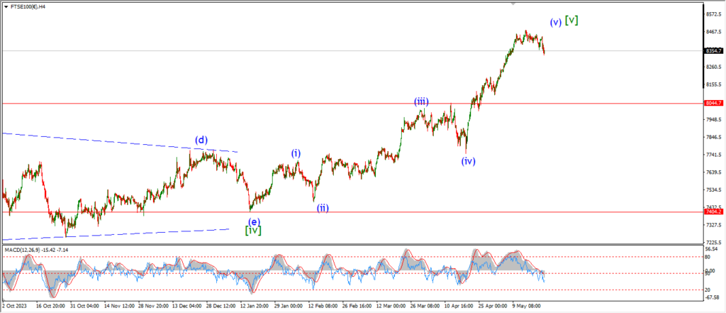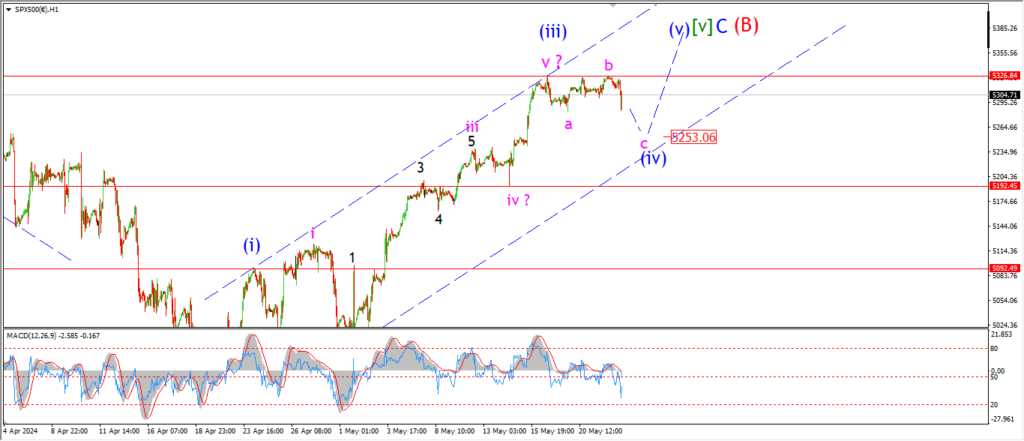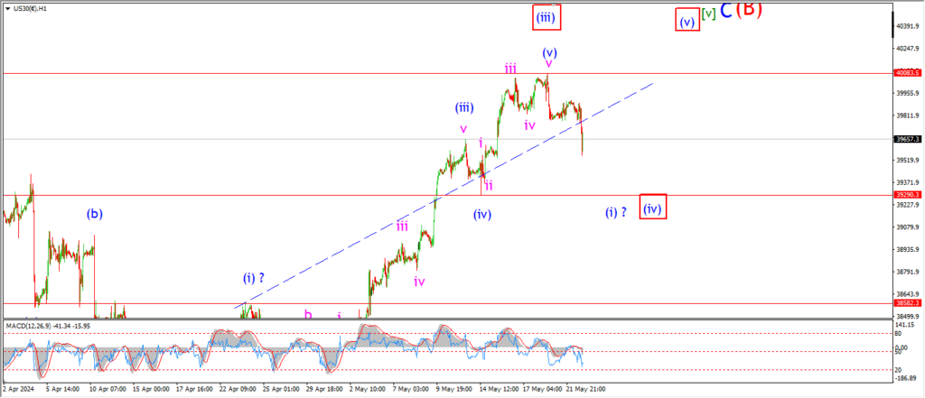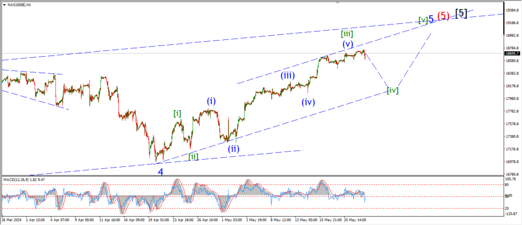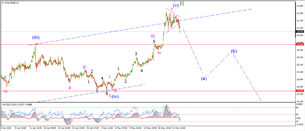 The reversal off the highs is suggesting that the price has now turned into wave ‘i’ of (i) today.